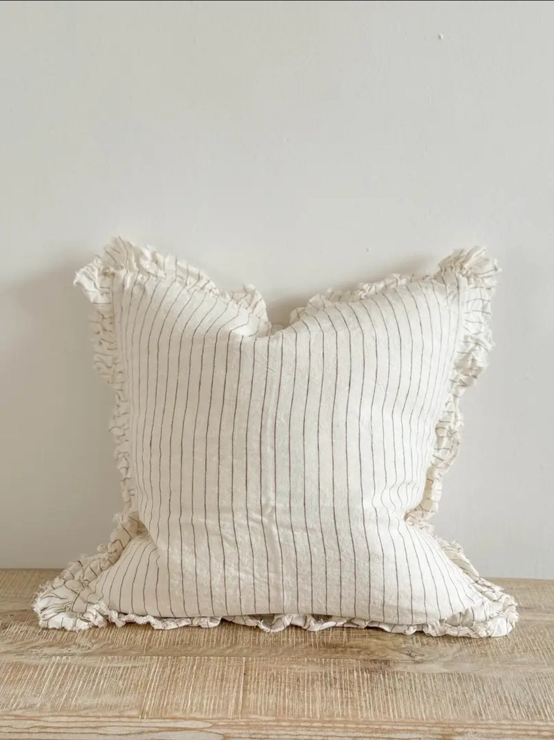 Soft ruffles, warm rust stripes, and a gentle vintage charm—the Hallie Rust Stripe Ruffle Cushion Cover brings the cosy, nostalgic feel of a well-loved country home into your space. With its delicate frill edging and earthy tones, it’s made for slow living, warm cups of tea, and moments of calm in beautifully styled surroundings.